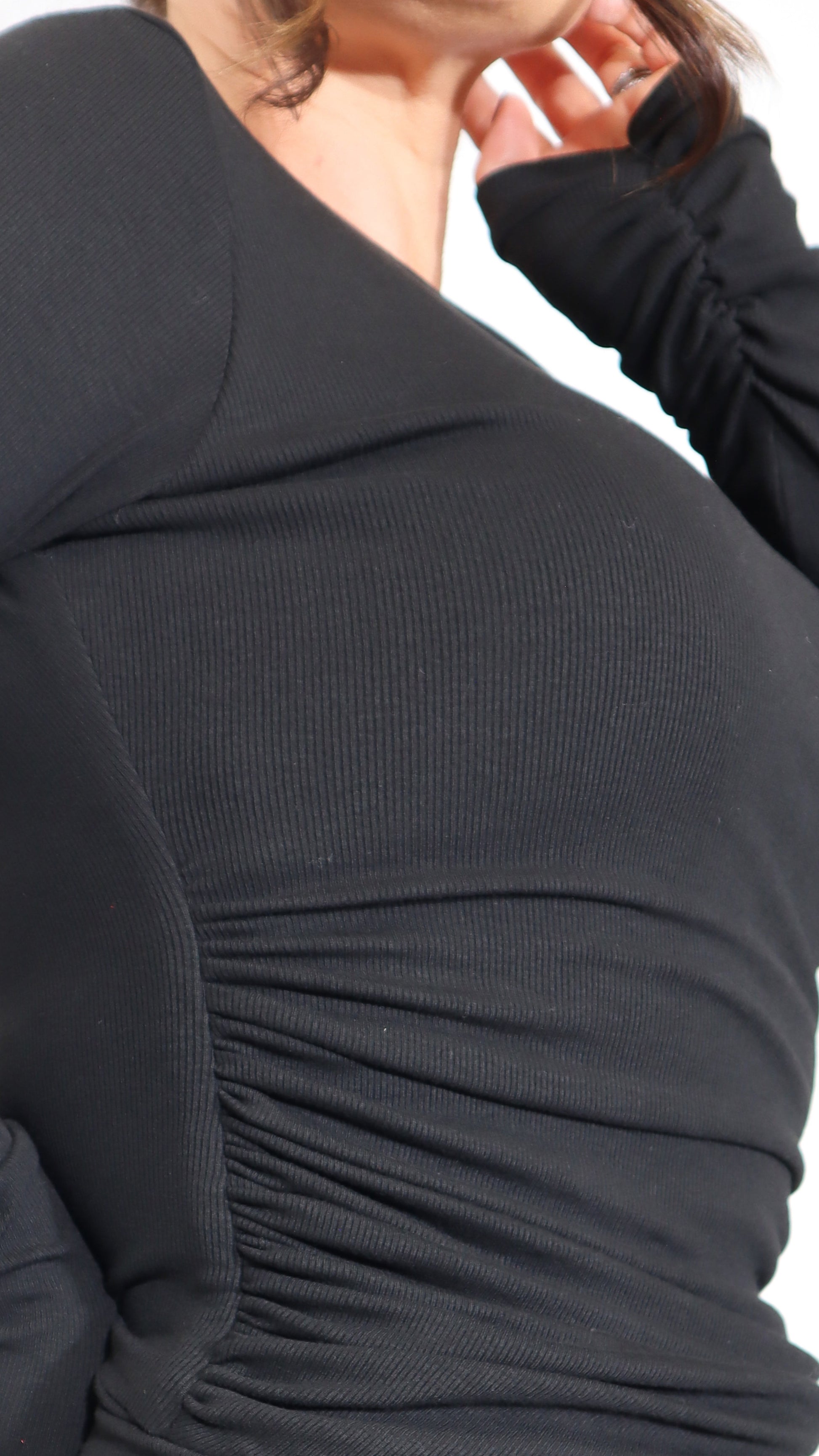 🎨 Stylish Details: A chic crew neck and gathered cuffs transform a basic black top into a fashion-forward piece for any occasion.